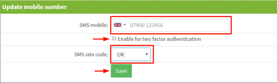 - Ensure you have the correct rate code for SMS, either UK or overseas.