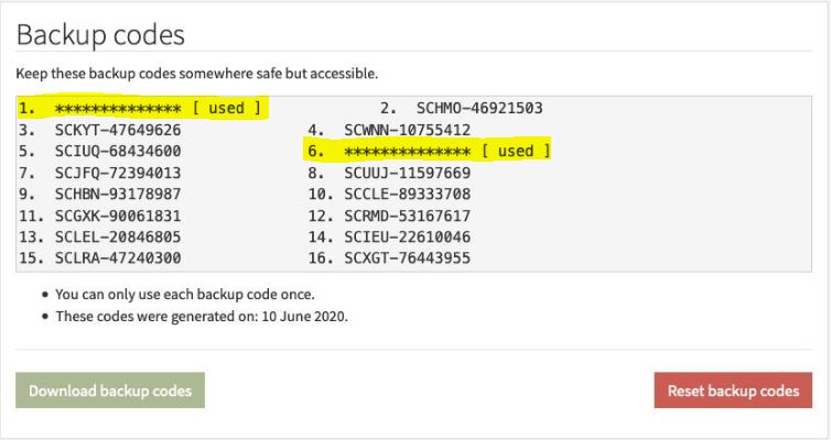 Reasons you would re-set your backup codes for the following reasons: